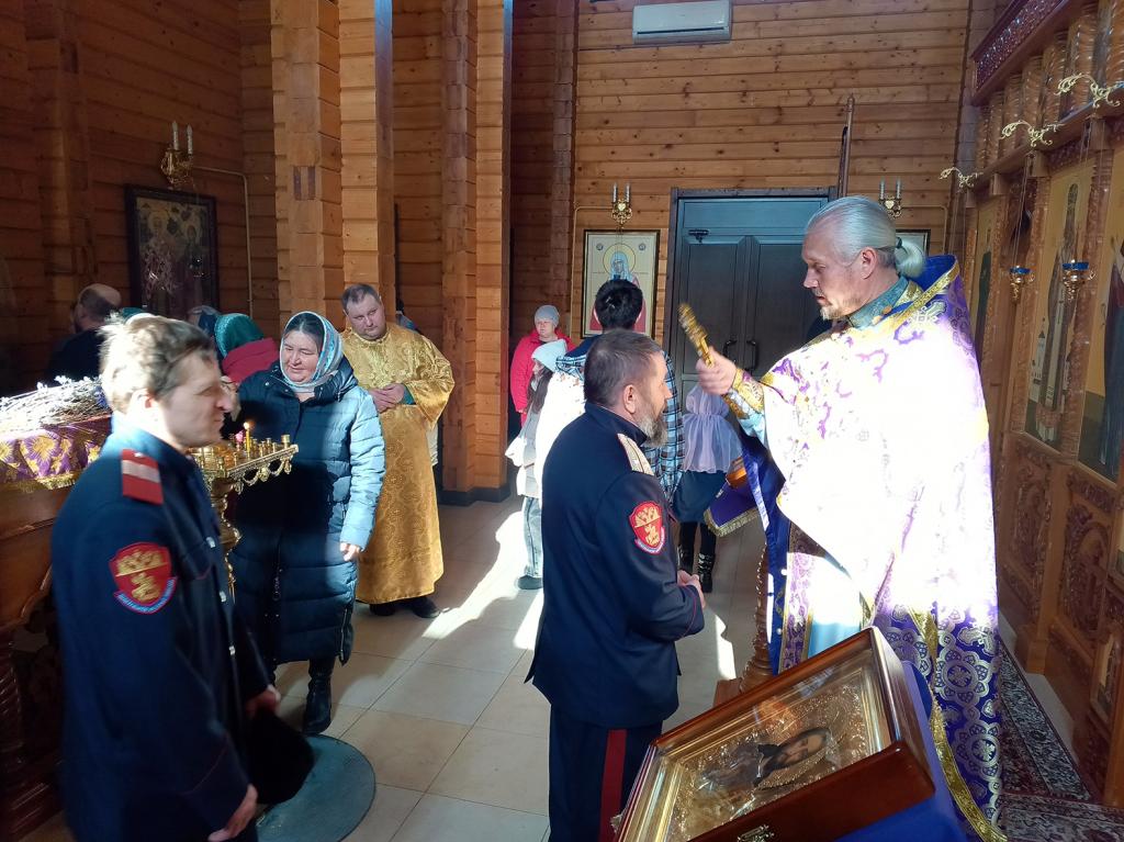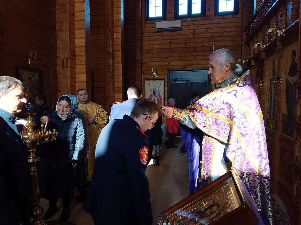 Казаки посетили воскресное богослужение в Храме иконы Божией Матери "Всех скорбящих радость".